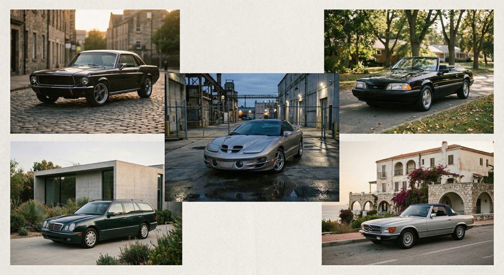 Five affordable classics worth watching this week: a restomod 1968 Mustang, a Foxbody GT convertible, a WS6 Trans Am, a Mercedes E320 wagon, and an R107 SL — with buyer logic, failure points, and the best buy of the day.